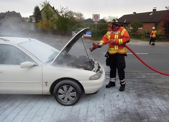 In den frühen Abendstunden wurden am Donnerstag die Einsatzkräfte der Freiwilligen Feuerwehr Leeseringen in die Nienburger Straße gerufen. Auf Höhe des Restaurants in der Ortsmitte hatte der Fahrer eines Ford Mondeo eine Rauchentwicklung im Motorraum bemerkt und sein Fahrzeug auf dem Seitenstreifen zum Stehen gebracht. Der sofort herbeigeeilte Restaurantbesitzer nahm eine erste Brandbekämpfung mit einem Feuerlöscher vor, bis die Kräfte der Ortsfeuerwehr an der Einsatzstelle eintrafen. Unter Einsatzleitung des Ortsbrandmeisters Bernd Thieheuer wurde zunächst der Straßenabschnitt abgesichert, bevor schließlich mit Hilfe der Schnellangriffseinrichtung und des Wasservorrates im Tanklöschfahrzeug ein Löschangriff begonnen werden konnte. Im Anschluss folgte die Kontrolle des Motorraumes mit Hilfe der Wärmebildkamera, bevor die 13 Einsatzkräfte schließlich wieder zu ihrem Standort einrücken konnten. Auch die Polizei aus Nienburg war mit einem Streifenwagen vor Ort, um die zugehörigen Ermittlungen aufzunehmen.