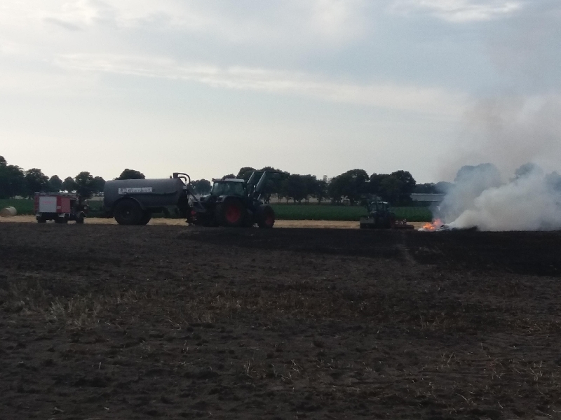 Stoppelfeld geriet beim Ballenpressen in Brand