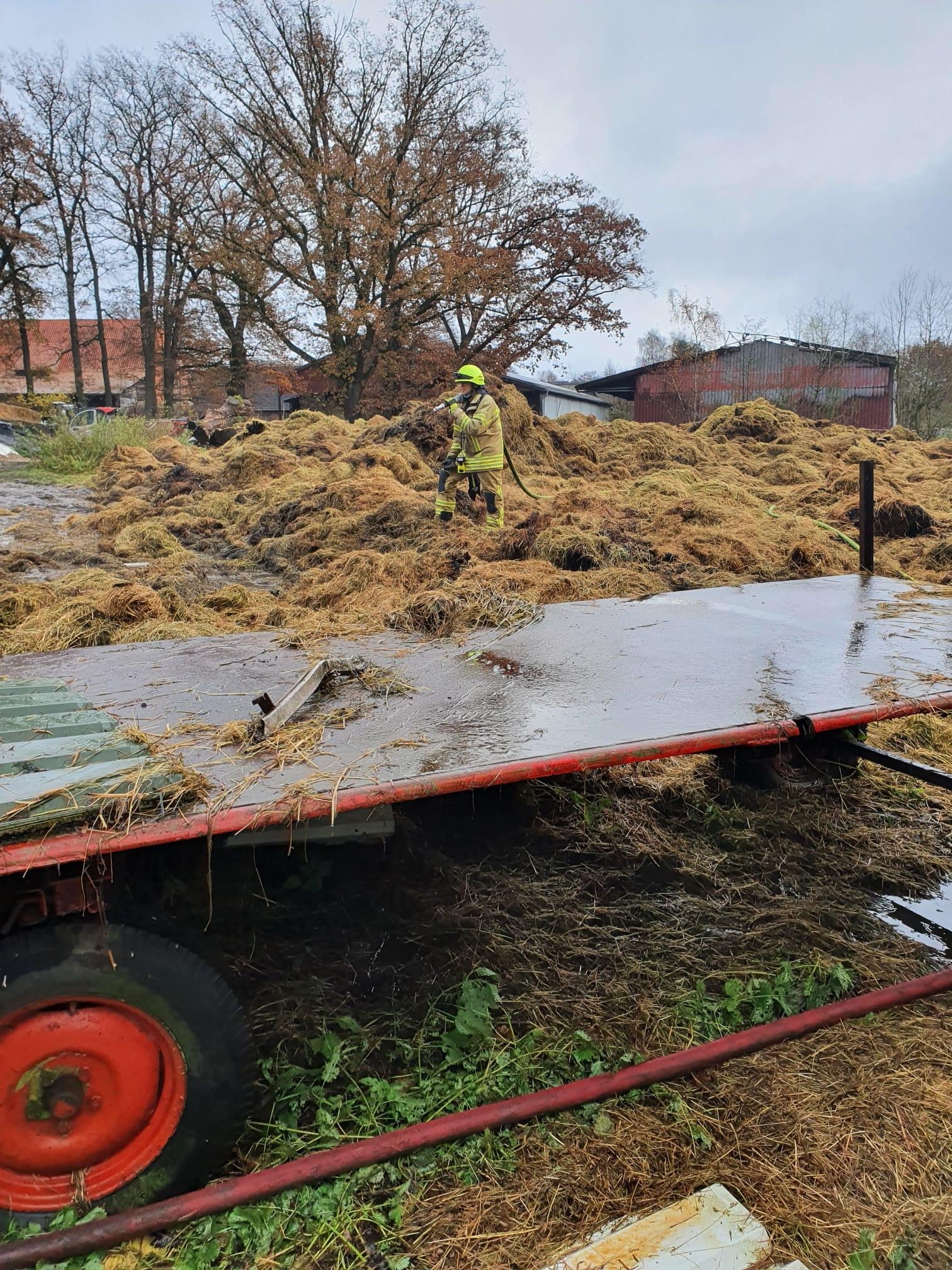 An der Einsatzstelle vom Sonntag kam es zu einer erneuten Rauchentwicklungen in dem abgebrannten Stroh.
