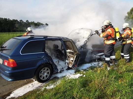 Am Freitagmorgen wurden die Ortsfeuerwehren Estorf und Leeseringen auf die Verbindungsstrecke zwischen Leeseringen und Schessinghausen gerufen. In der Nähe der Ortschaft Nienburger Bruch hatte der Fahrer eines BMW aus Richtung Husum kommend eine Rauchentwicklung im Motorraum seines Fahrzeuges bemerkt. Er reagierte umgehend, stoppte sein Fahrzeug und brachte sich und seinen Beifahrer in Sicherheit, dann alarmierte er die Feuerwehr. Rasch griffen die Flammen aus dem Motorraum auf das gesamte Fahrzeug über, sodass die eintreffenden Einsatzkräfte der Feuerwehren aufgrund der starken Rauchentwicklung nur unter schwerem Atemschutz bis an das Fahrzeug heran vorgehen konnten. Mehrere Trupps gingen mit Schaum gegen die Flammen im Fahrzeug vor, um diese zu Ersticken. Zwar war das Feuer schnell unter Kontrolle, doch am Fahrzeug entstand dennoch ein erheblicher Sachschaden. Auch die Polizei war mit einem Streifenwagen vor Ort, um den Vorgang aufzunehmen.