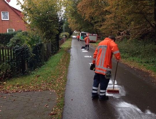 Am Dienstag erhielt der Ortsbrandmeister der Freiwilligen Feuerwehr Leeseringen in den Mittagsstunden telefonisch die Meldung, dass im Ortsbereich eine Fahrbahnverschmutzung durch Diesel auf einer Länge von etwa 4 Kilometern vorlag. Kurzerhand rief er 6 Kameraden der Ortsfeuerwehr zusammen, die gemeinsam mit beiden Einsatzfahrzeugen zur Schadensstelle ausrückten, um die Kraftstoffflecken zunächst mit Bindemittel abzustreuen und die Fahrbahn im Anschluss mit Besen gründlich zu reinigen, um eine weitere Gefährdung für Mensch und Umwelt auszuschließen. Ein Verursacher konnte nach ersten Angaben nicht ermittelt werden.