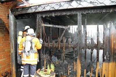 Unter schweren Atemschutz und mit drei Rohren konnte das Feuer, welches mittlerweile das komplette Carport und Teile des Dachstuhles erfasst haben, gelöscht werden. Vorsorglich wurden Teile des Daches noch entfernt um an die letzten Glutnester heranzukommen. Mittels einer Wärmebildkamera wurden die Räume nach weiteren Glutnestern abgesucht.