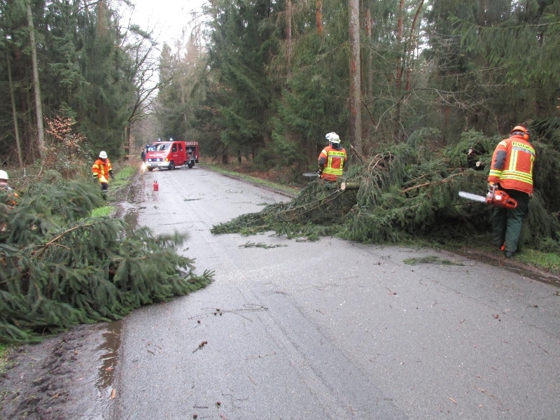 Das Orkantief "Friederike" bescherte diversen Feuerwehren heute eine Menge Arbeit. Um kurz vor halb vier wurde auch für uns Alarm ausgelöst, da einige Einsätze in unserem Einsatzgebiet abzuarbeiten waren. Umgestürzte Bäume auf dem "Schessinghäuser Weg", dem "Nienburger Bruch" und dem "Estorfer Weg" wurden mit Hilfe zweier Kettensägen entfernt, um die Straßen wieder passierbar zu machen.