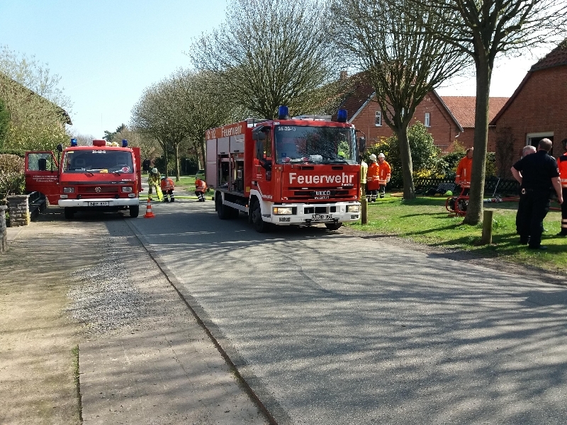 (Estorf) In der Mittagszeit des heutigen Samstags ertönten die Funkmeldeempfänger und Sirenen in Estorf, Landesbergen und Leeseringen. Gemeldet wurde ein Küchenbrand in Estorf. Die ersteintreffenden Einsatzkräfte unter der Einsatzleitung von Jörn Vetter richteten umgehend eine Wasserentnahmestelle aus einem nahe gelegenen Unterflurhydranten her. Parallel rüsteten sich mehrere Trupps mit Atemschutzgeräten aus.